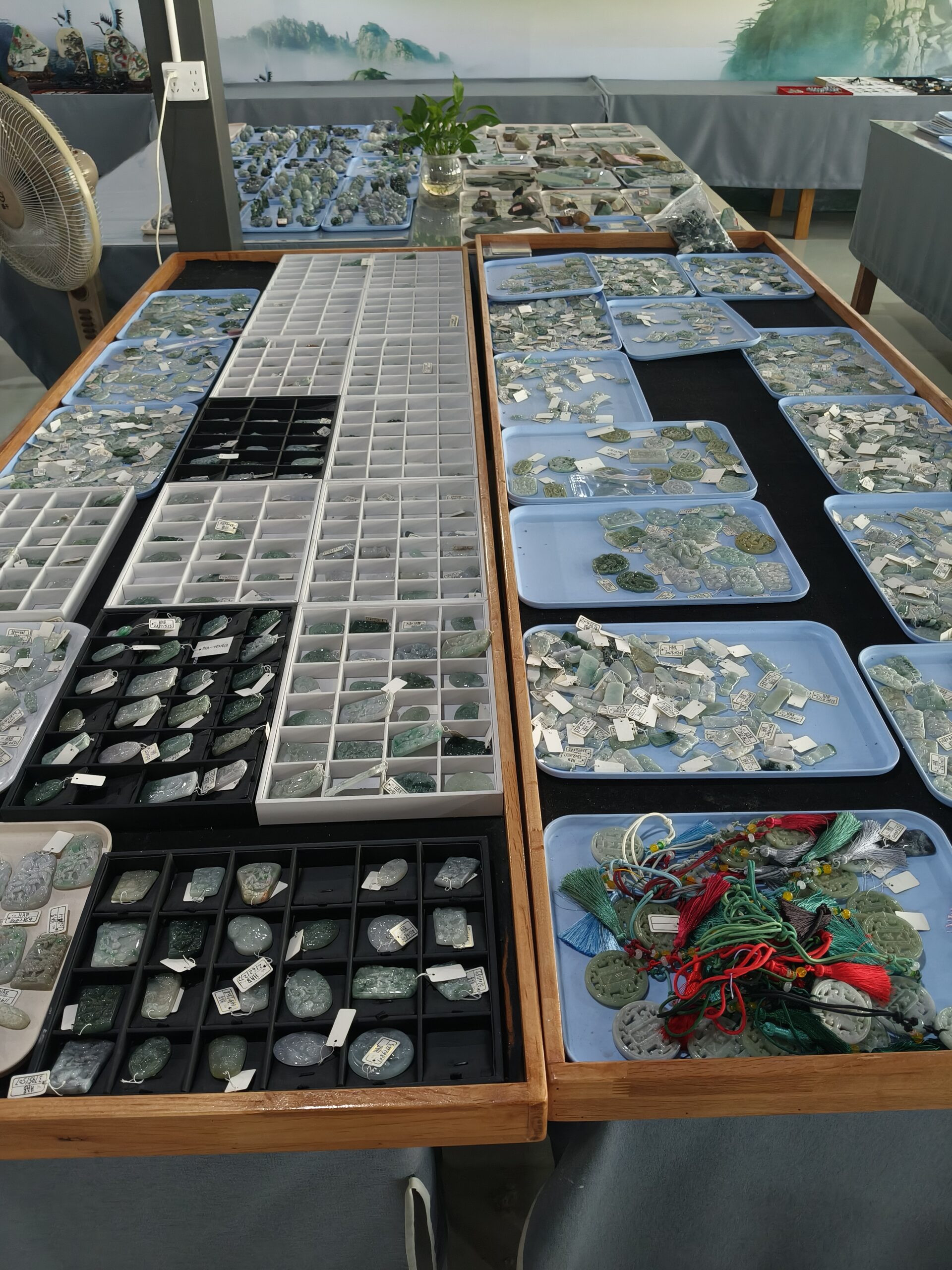 线下展厅,汇集海量现货样品。从种水一流的蛋面、手镯,到意境深远的挂件、摆件,琳琅满目,支持视频选货,所见即所得。